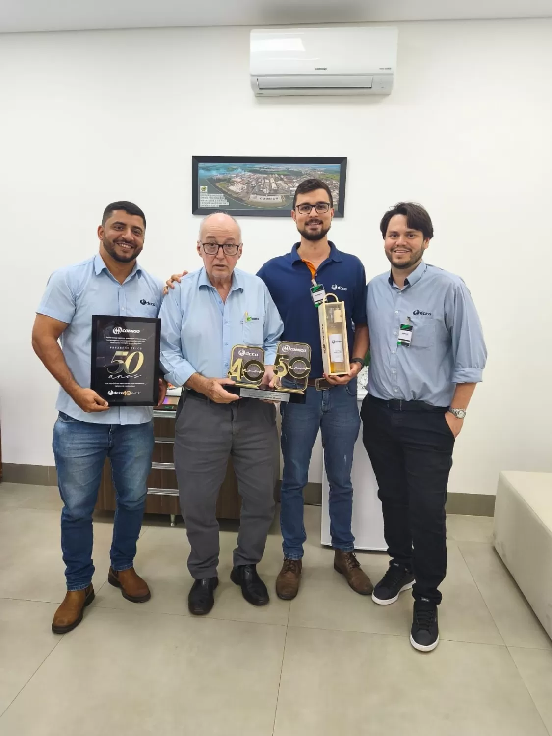 Em um momento marcado por reconhecimento e parceria, a COMIGO recebeu, nesta quarta (19/11), representantes da DCCO para a entrega de uma homenagem especial pelos 50 anos da Cooperativa. A empresa, que também celebra 40 anos de atuação, é parceira da COMIGO na aquisição de equipamentos.